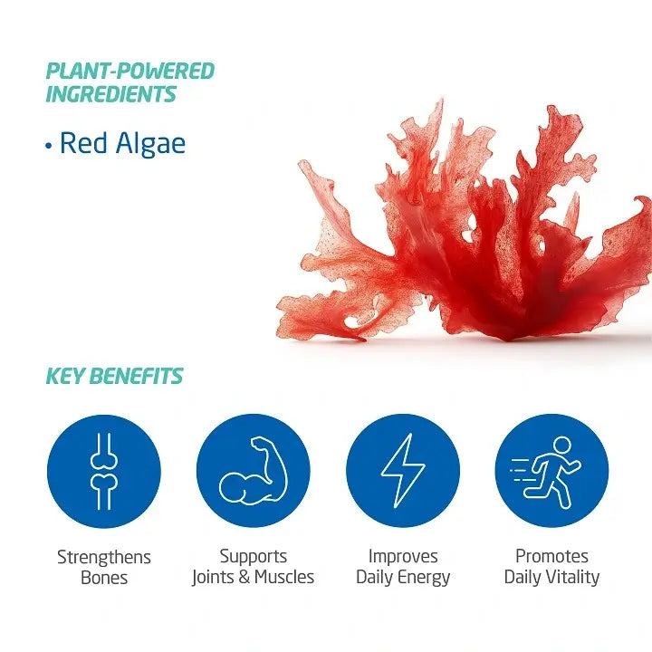 AquaCal Bone & Beyond is a plant-powered bone support formula made with algae-based calcium (Lithothamnion). Gentle on the body and naturally rich in minerals, it helps maintain bone density, support muscle strength, and nourish daily vitality — the natural way.