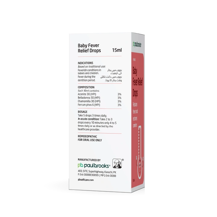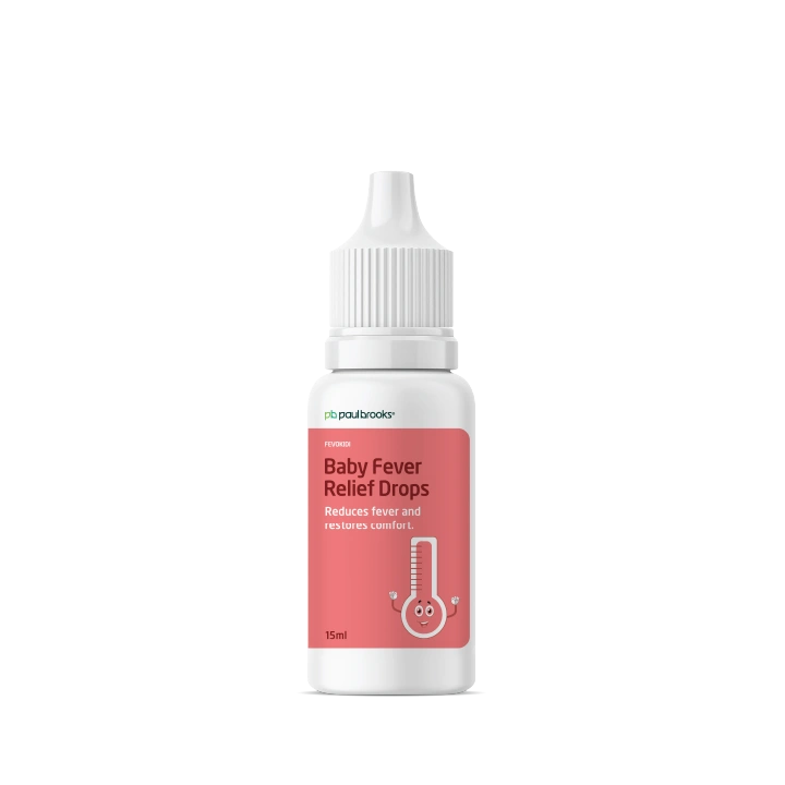 Paul Brooks Baby Fever Relief Drops is a gentle homeopathic remedy that helps relieve feverish conditions caused by various factors. Specially formulated for babies and children, it provides a natural approach to managing temperature during illness or teething.