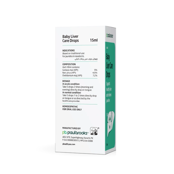 Paul Brooks Baby Liver Care Drops is a gentle homoeopathic formulation specially prepared to help support healthy liver function and relieve jaundice-related discomfort in newborns.