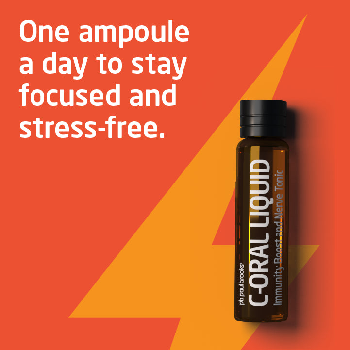 Paul Brooks C-Oral Liquid Ampule supports nerve health, reduces stress, and boosts mental clarity. Enriched with Emblica officinalis (Amla) for immunity, Rosa canina (Rosehip) for vitality, Withania somnifera (Ashwagandha) for strength, and Panax ginseng for energy, it helps fight fatigue, seasonal illnesses, and signs of aging while supporting overall well-being.