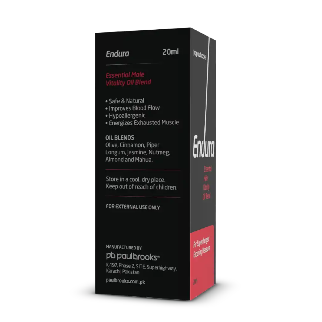 Endura Oil is a natural vitality blend that improves blood flow, enhances stamina, and re-energizes exhausted muscles, while being gentle and hypoallergenic. Infused with Olea europaea (Olive), Cinnamomum verum (Cinnamon), and Piper longum (Long Pepper), it combines restorative botanicals traditionally valued for supporting male strength, circulation, and overall performance.