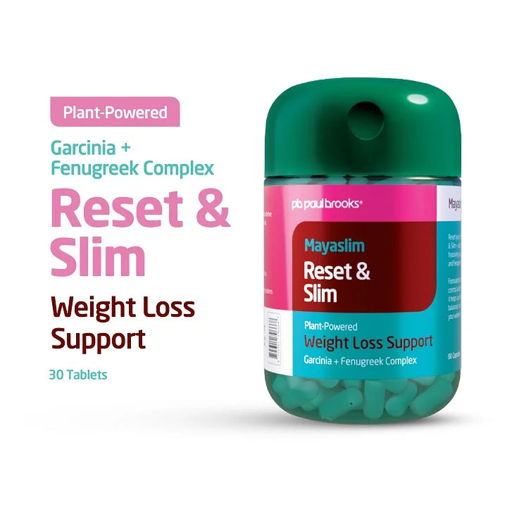 Mayaslim Reset & Slim is a plant-powered formula made with Garcinia, Fenugreek, and other traditional herbs to support healthy weight management. It helps curb appetite, boost metabolism, and guide you toward a lighter, more balanced lifestyle — naturally.